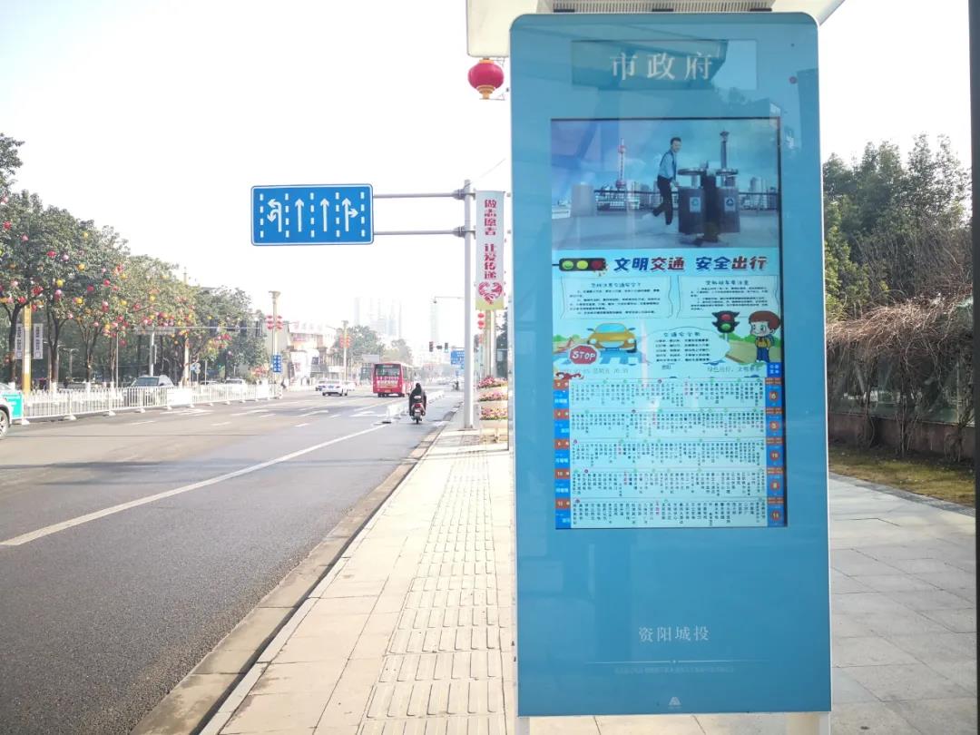 11月20日,飯后和家人一起散步的市民陳女士路過10路公交車中級法院站臺時,她第一次發現智能電子站牌是觸摸屏的,不僅實時顯示著車輛位置,還能查詢乘車線路,讓她對智慧資陽有了直觀的認識。